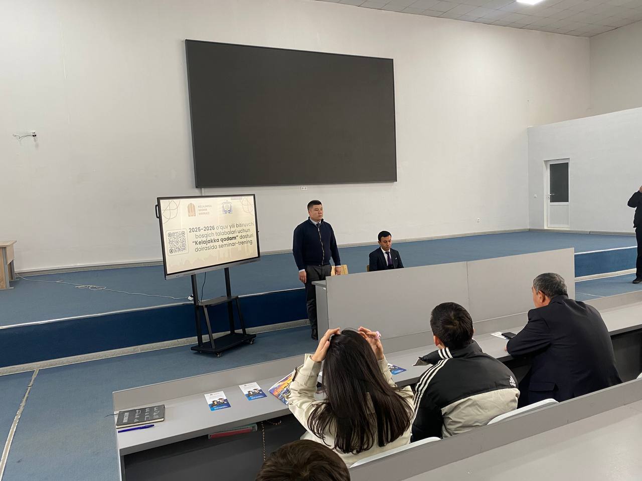 “Kelajakka qadam” loyihasi – yangi imkoniyatlar sari” mavzusidagi suhbat jarayonida «Kelajakka qadam» markaz menedjeri Sh.Ermatov, fakulteti dekan oʻrinbosari A.Abdullayev, fakultet talabalar koordinatori Z. Davlatbekov hamda Milliy bank Olmaliq filiali vakillari ishtirok etishdi.