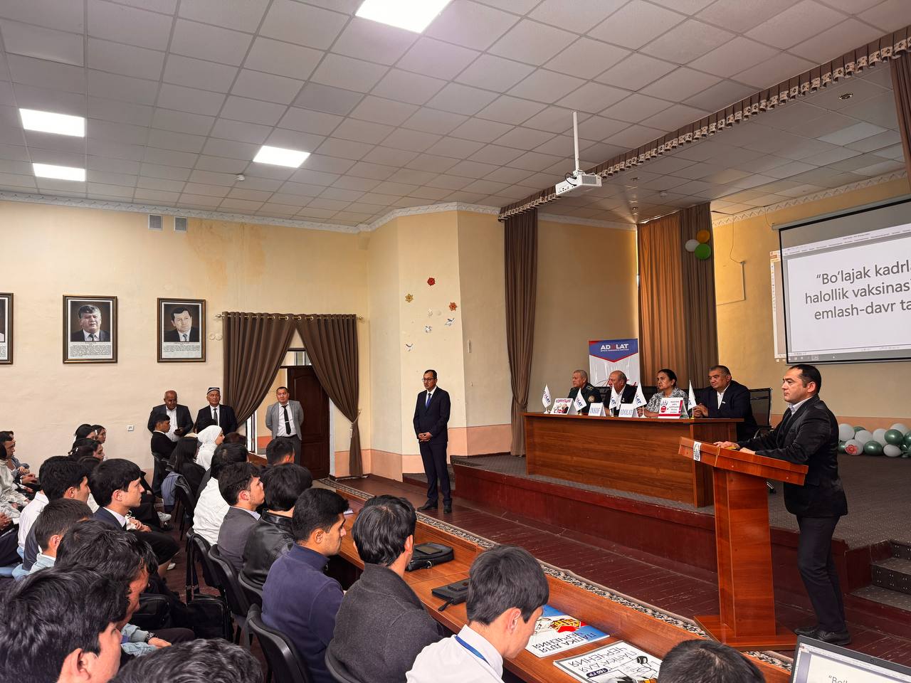 Konchilik ishi fakultetida professor-o’qituvchilar, talaba-yoshlar hamda xodimlar ishtirokida “Bo‘lajak kadrlarni halollik vaksinasi bilan emlash – davr talabi” mavzusida targ‘ibot tadbiri o’tkazildi. Tadbirni Yoshlar masalalari va ma’naviy-ma’rifiy ishlar bo‘yicha direktorning birinchi o‘rinbosari B.Djamiyev ochib berdi hamda mehmonlar bilan tanishtirib o’tdi.