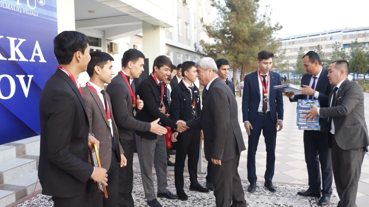 Students accepted to the 1st stage by the director of the branch, Alisher Samadov, were presented with student certificates, and the chairman of the Tashkent Regional Council of the Youth Union of Uzbekistan, Mukhriddin Khamzaev, presented special certificates for the coordinators of the primary organization of the Youth Union of the branch.