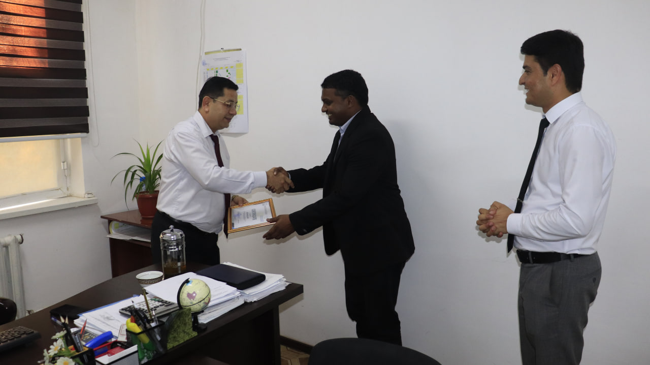 Muhammad Rifki, Doctor of Philosophy, citizen of the Republic of Sri Lanka, visited the Almalyk branch of TSTU. During the visit, the guest was provided with a number of information regarding the activities of the branch and laboratories.