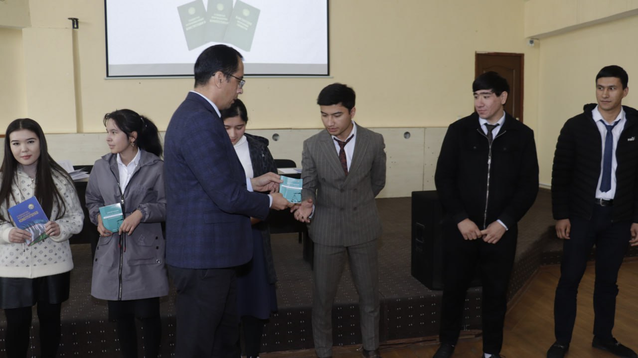 🔷At the event, held with the participation of the deputy mayor of the city S. Akhmedov, the leadership of the branch and students, representatives of the propaganda group gave a lecture on the essence of the Constitution, and a quiz was also organized.