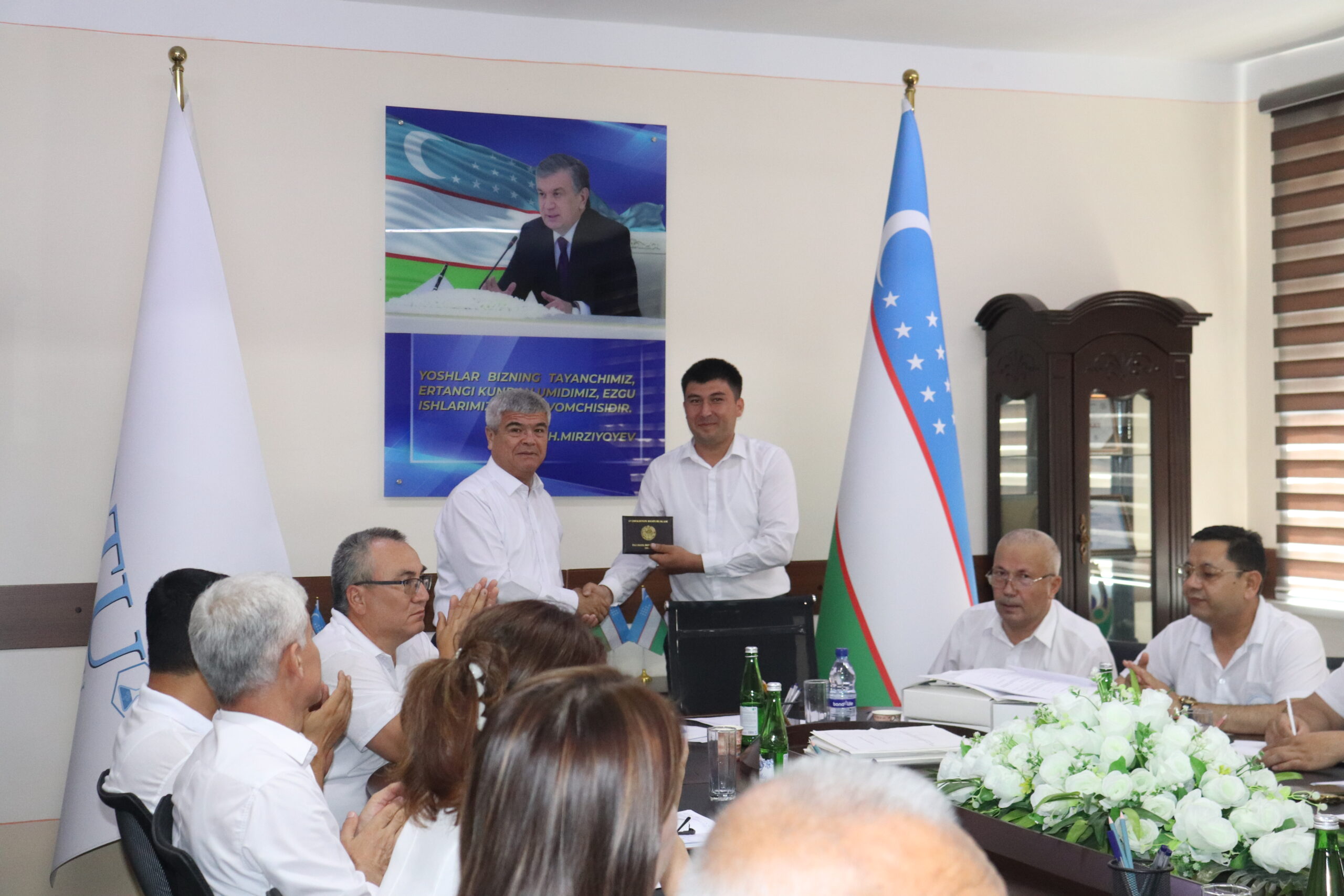 Traditionally, at the beginning of the council, Yusupov Bekzod Dilmurodovich, senior lecturer of the department of technological machines and equipment, was awarded a Doctor of Philosophy diploma in technical sciences.