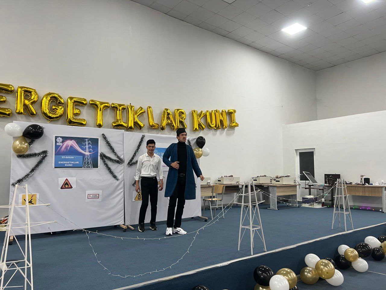 Кun munosabati bilan TDTU Olmaliq filiali Energetika va mashinasozlik fakultetida Elektr texnikasi va elektr mexanikasi kafedrasi tomonidan “Energiya tejamkorlik – davr talabi” shiori ostida tadbir tashkil etildi. Tadbirni “Elektr texnikasi va elektr mexanikasi” kafedrasi mudiri Sh.Rayxonov va kafedra dotsenti M.Muminov talabalani bayram va kirib kelayotgan 2025-yil bilan tabriklab, samimiy tilaklarini bildirdilar. Tadbirda 200 Kvt quvvatli ijtimoiy energiya normasi doirasida sahna ko‘rinishlari tashkil etildi, energiya samaradorligini targ‘ib qiluvchi chiqishlar bilan davom ettirildi.