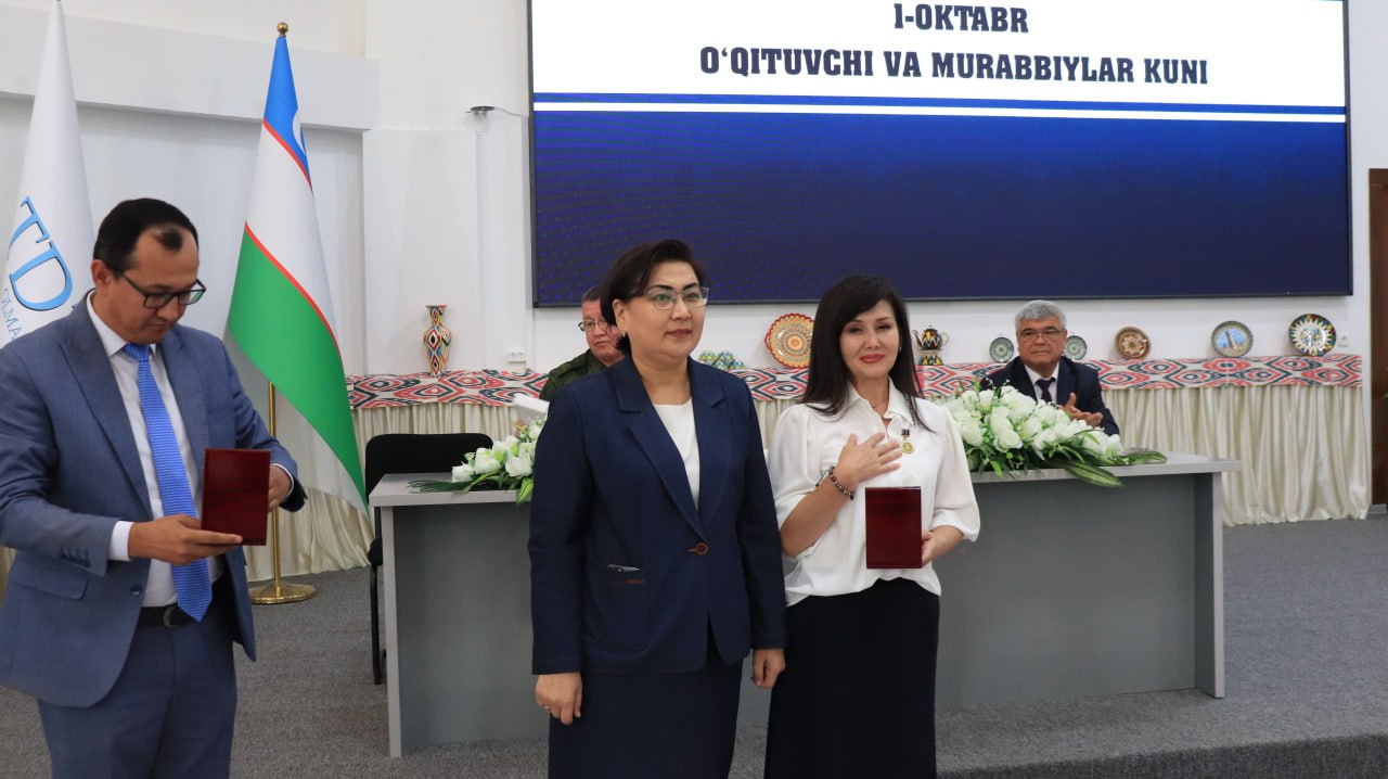 Oliy ta’lim tizimi rivojiga uzoq yillar davomida qoʻshib kelayotgan salmoqli hissasi, ilm yoʻlidagi sadoqati va fidoyiligi uchun Oliy ta’lim, fan va innovatsiyalar vazirining buyrugʻi bilan TDTU Olmaliq filiali direktori t.f.d., professor A.Samadov va Metallurgiya kafedrasi dotsenti, PhD N.Asqarova “Oliy ta’lim a’lochisi” faxriy koʻkrak nishoni bilan taqdirlandilar. Boshqarma boshligʻi N.Kulbekova jamoaga bayram tabrigini yoʻllab, taqdirlanganlarga yuksak mukofotlarni topshirdi.