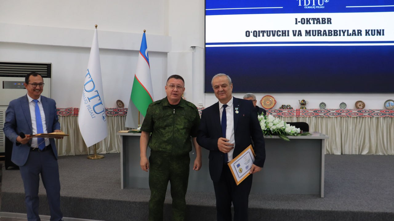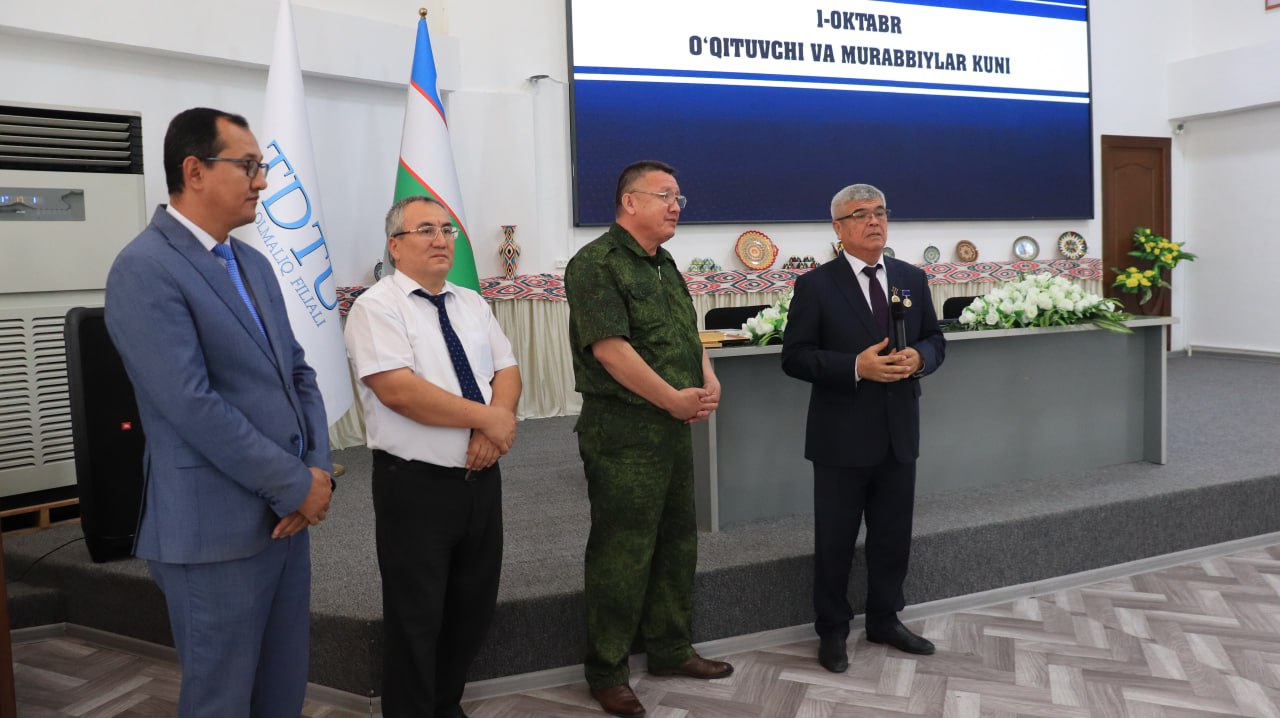 Bayram munosabati bilan Oʻzbekiston “Veteran” jangchi faxriylar kengashi tomonidan filial direktori A.Samadov “Yoshlarni vatanparvarlik ruhida tarbiyalashdagi hissasi uchun” koʻkrak nishoni, filial professor-oʻqituvchisi Z.Sadullayev “Fidoyi vatanparvar” koʻkrak nishoni bilan taqdirlandi. Shuningdek, oʻzining fidokorona mehnati bilan filial rivojiga munosib hissa qoʻshib kelayotgan jamoa texnik xodimlari D.Joʻrayeva va E.Xasanov ham mazkur kengash tomonidan tashakkurnoma bilan taqdirlandilar.