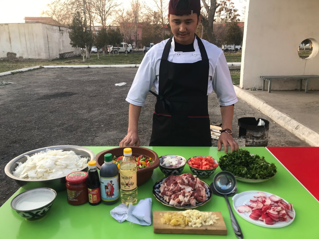 🔷Mahorat darsini pazandalik mahoratiga ega, oshpazlik sir-asrorlarini mukammal egallagan mazkur fakultet talabasi Shaxzodbek Umarov o‘tib berdi. Mehr, did va usta qo‘llar bilan mohirona tayyorlangan lag‘mon taomining ta’mi o‘zgacha bo‘ldi.