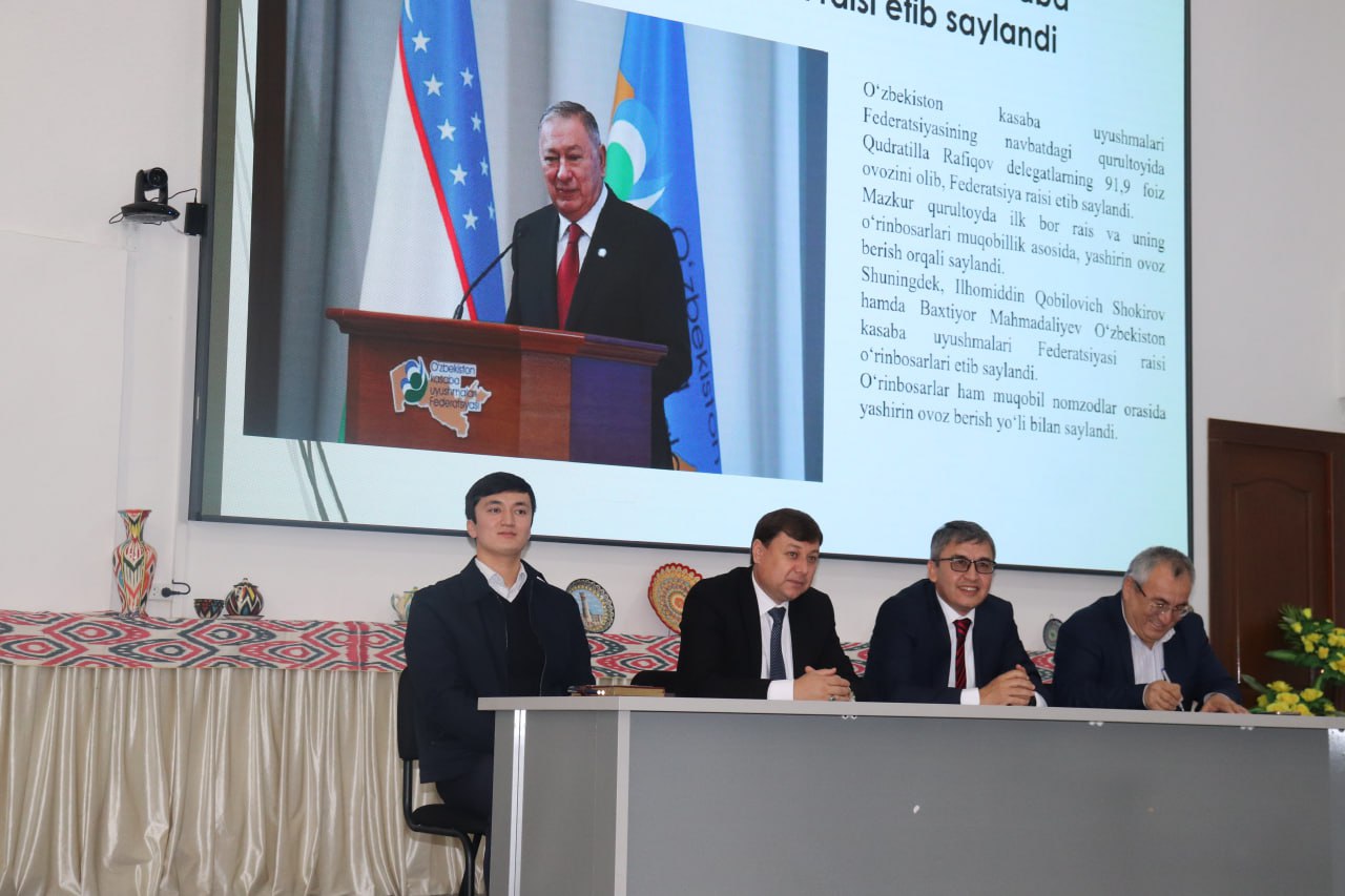 Tadbirning ikkinchi qismida ODTI Kasaba uyushmasi raisi N.Nosirovning 2024-2025 yillarda amalga oshirgan ishlari haqida hisoboti tinglandi. Shuningdek, jamoaning yashirin ovoz berish yoʻli bilan ODTI Kasaba uyushmasi raisligiga Azimjon Bektayev saylandi.