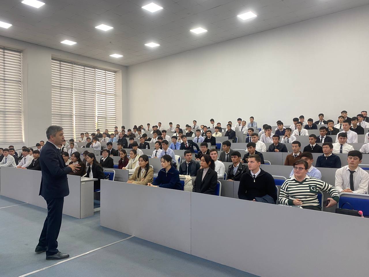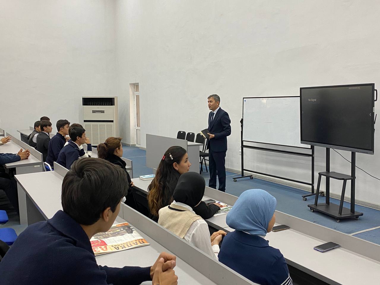 Olmaliq davlat texnika instituti Energetika va mashinasozlik fakultetining 1-bosqich talabalari bilan uchrashuvda ODTI rektori v.v.b. texnika fanlari doktori U.Xalikulov ta`lim jarayonlari, fakultet hamda talabalar turar joylaridagi shart-sharoitlar, lider talabalar guruhini tashkil etish va boshqa masalalar yuzasidan suhbatlashdi. Suhbat ochiq muloqot tarzida samimiy ruhda bo‘ldi.