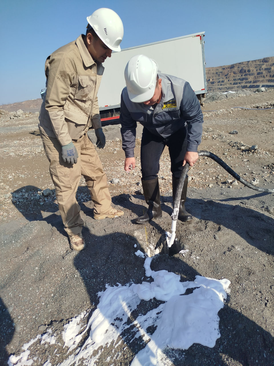 Tadqiqotlar OKMKning Qalmoqqir konida o‘tkazilib, ularning asosiy yo‘nalishi — foydali qazilma konlarida skvajinalarni penagel yordamida zaryadlash texnologiyasini ishlab chiqishga qaratildi.