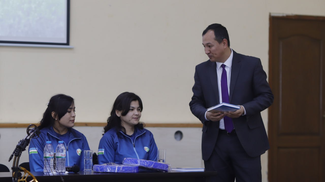 🔷TDTU Olmaliq filiali talabalari bilan uchrashuvga kelgan sportchi qizlar para kamondan otish bo‘yicha chempion bo‘lsalar-da, aslida ular bugungi kun, zamonamiz qahramonlari, yosh avlodning sport tarixida o‘z nomini qoldirayotgan matonatli vakillaridir. Oʻzbekiston Davlat jismoniy tarbiya va sport unversiteti 1-bosqich talabalari Mansurova Oydinoy Mansur qizi para kamondan otish boʻyicha 7 karra Oʻzbekiston chempioni, Abdullayeva Nasiba Muhammad qizi 6 karra Oʻzbekiston chempioni sanaladi. 2021-yilda Nasiba “Jasorat” medali bilan taqdirlanganligini, unvonni shaxsan O‘zbekiston Respublikasi Prezidentidan qabul qilib olganini hayajon bilan so‘zlab berdi.