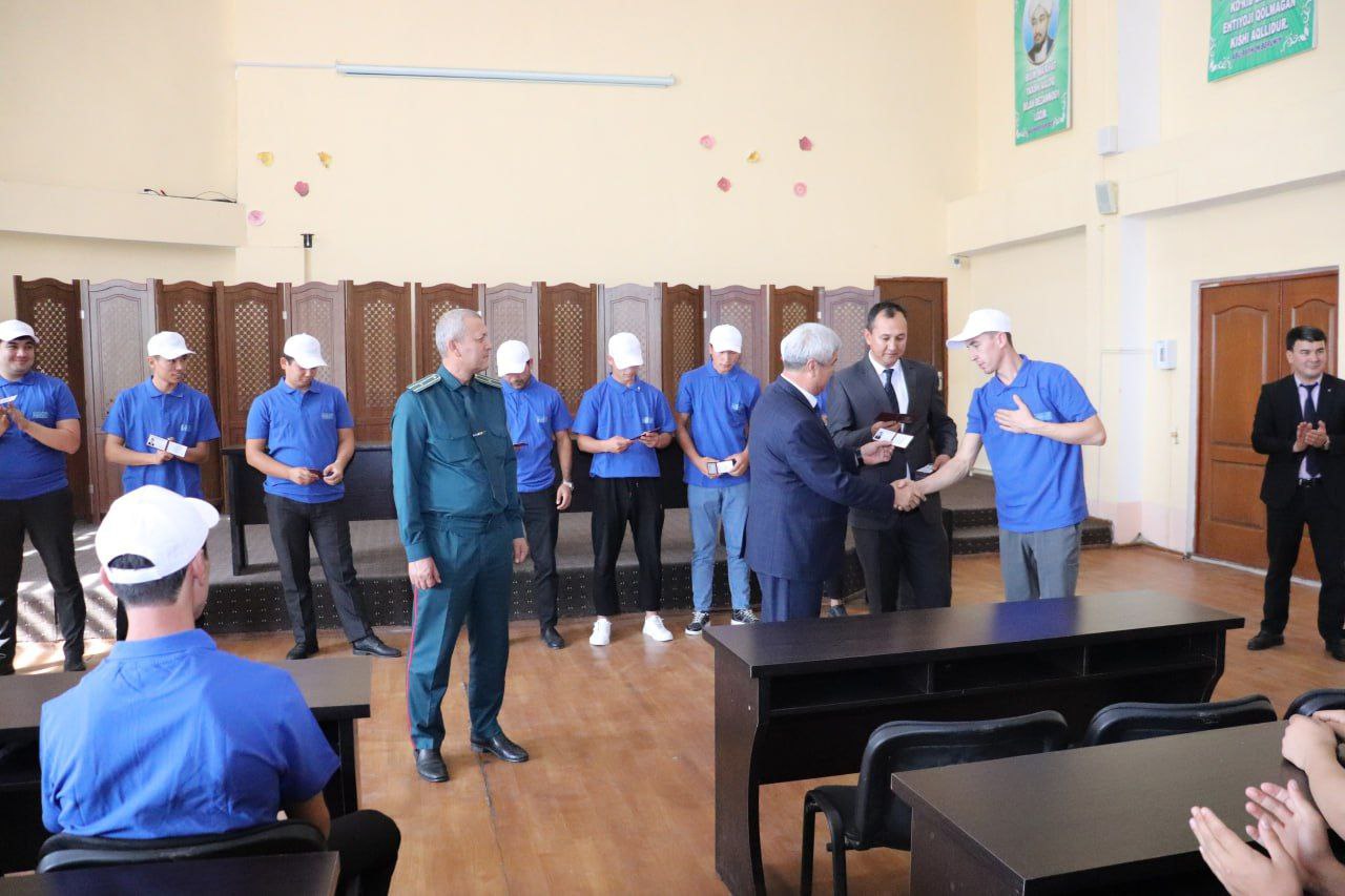 Uchrashuv so’ngida «Qalqon» guruhi a’zolariga a’zolik guvohnomasi hamda filial logotipi tushirilgan maxsus kiyim-boshlar topshirildi.