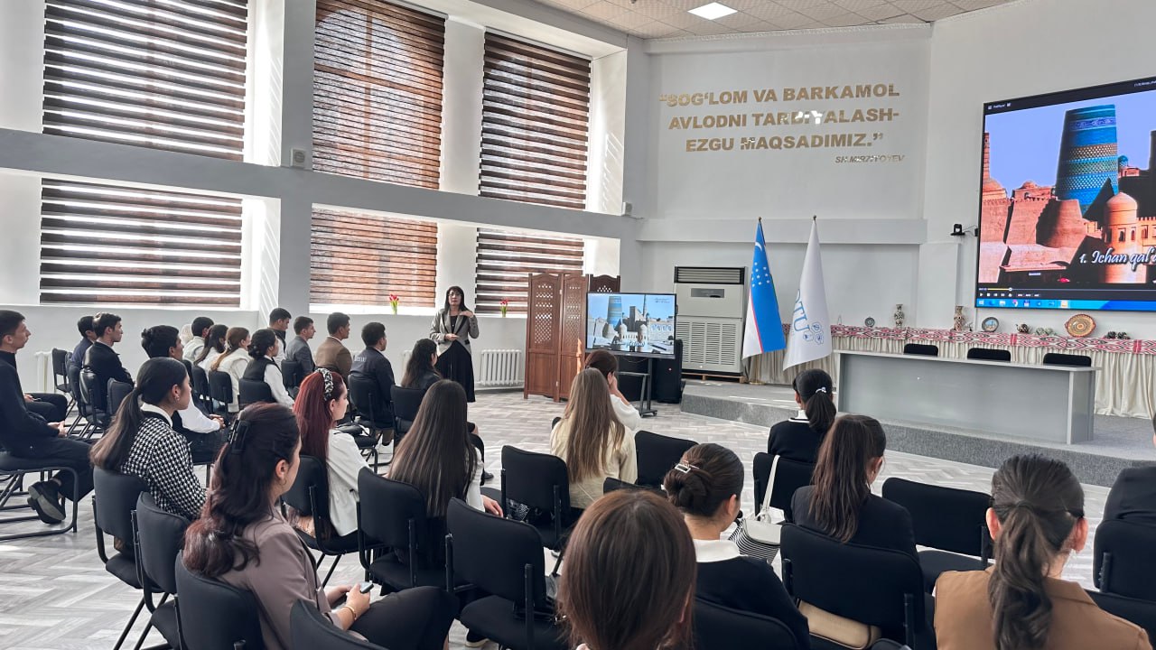 Сегодня д.х.н., профессор, декан факультета Металлургии и химических технологий Д.Мирхамитова провела «Урок просвещения» со студентами старших курсов факультета на тему «Вечные города» в рамках проекта «Час будущего». Рассказывая о социально-политических, экономических событиях, происходящих в нашей стране и мире, их значении и роли нашей страны в этих процессах, профессор подчеркнула, что просвещение и наука являются важнейшими основами жизни человека. Со студентами состоялась беседа об исторических, вечных городах и выдающихся деятелях нашей страны.