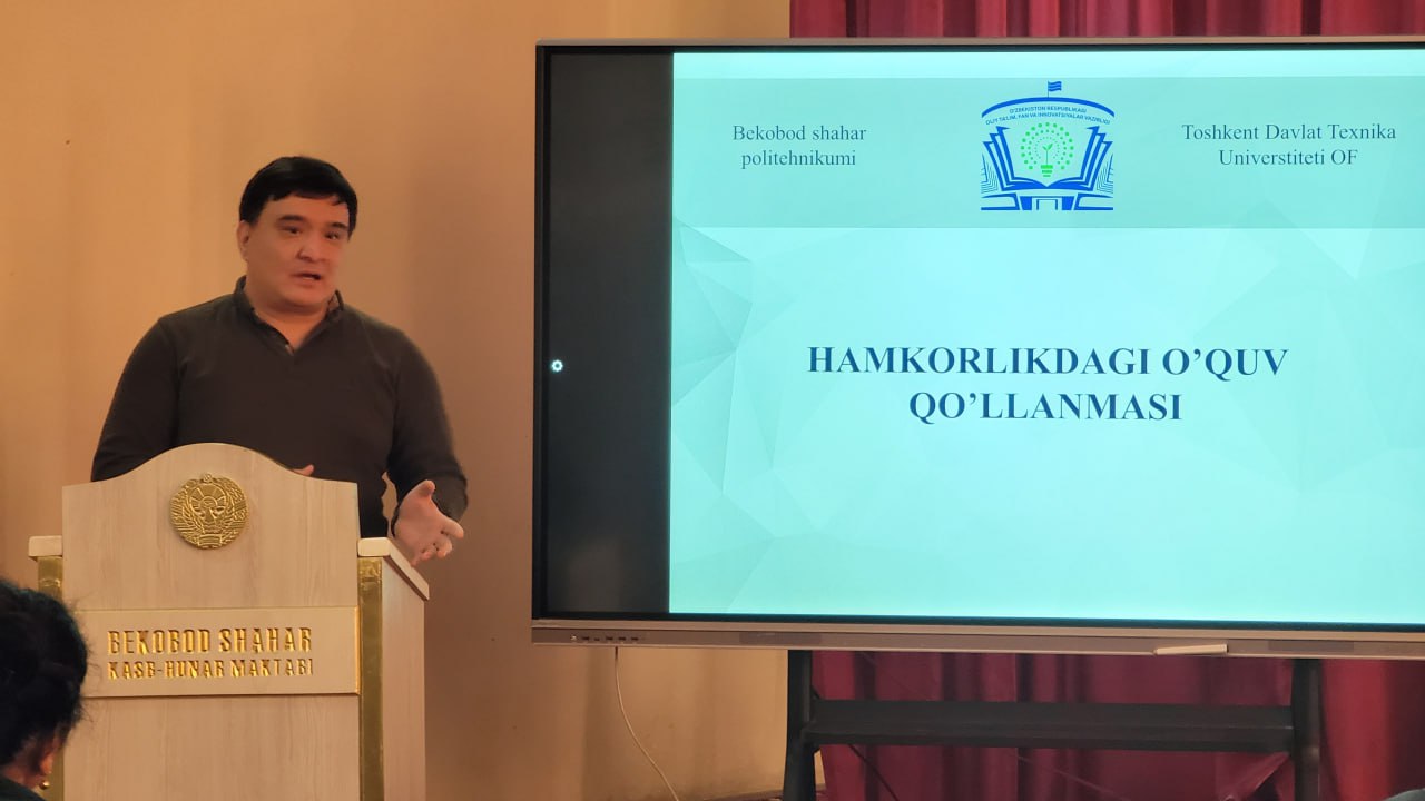 Вчера преподаватели кафедры Металлургии Алмалыкского филиала ТГТУ С.Мамарахимов, Д.Мирзавалиев, Ж.Суннатов посетили Бекабадский городской политехникум, закрепленный за филиалом. На встрече с преподавательским коллективом политехникума преподаватели кафедры провели презентацию учебного пособия по дисциплине «Технология и оборудование для повышения огнестойкости», разработанного на основе учебной программы по профессии «Сталевар» начального профессионального образования, написанного ими.