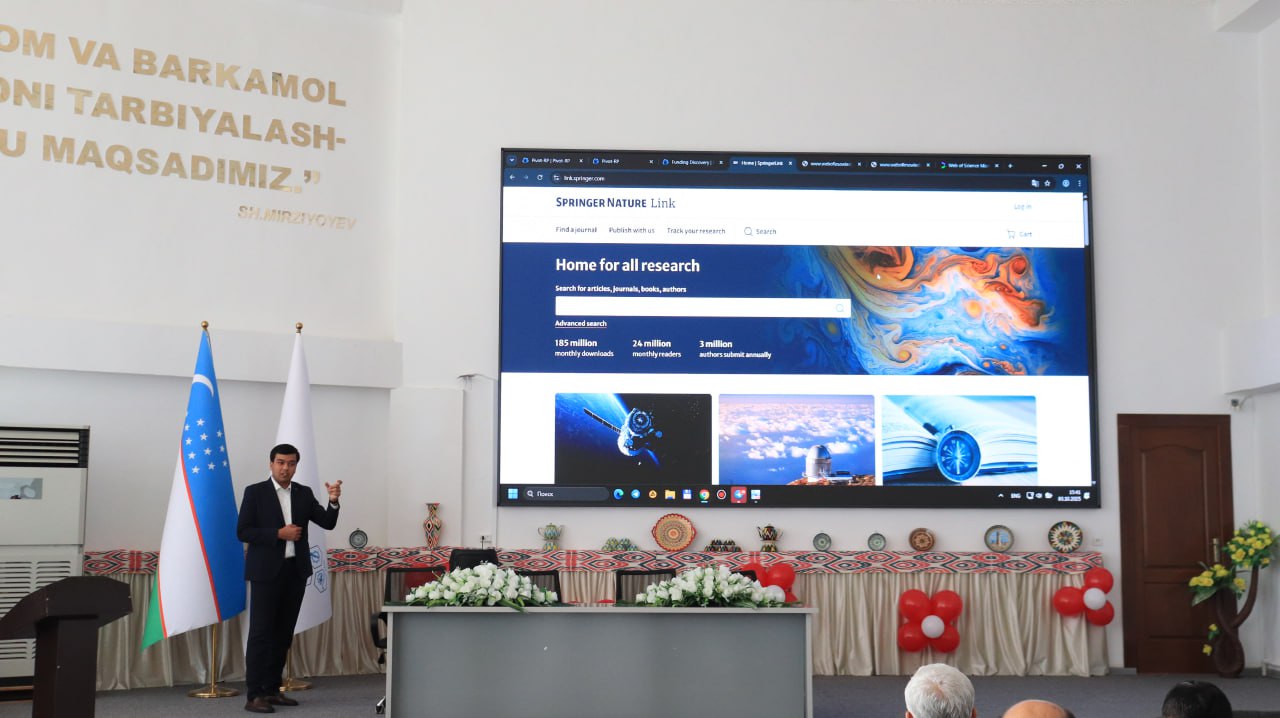 В целях публикации статей в научных журналах, входящих в международные базы данных «Scopus» и «Web of Science», а также повышения цитируемости статей, для преподавателей, докторантов и научных сотрудников института проведён семинар-тренинг. Провели его специалисты Отдела развития исследований в области прогнозирования развития науки Центра научно-технической информации при Агентстве инновационного развития Республики Узбекистан Д. Лутфуллаев и О. Ахмадов.