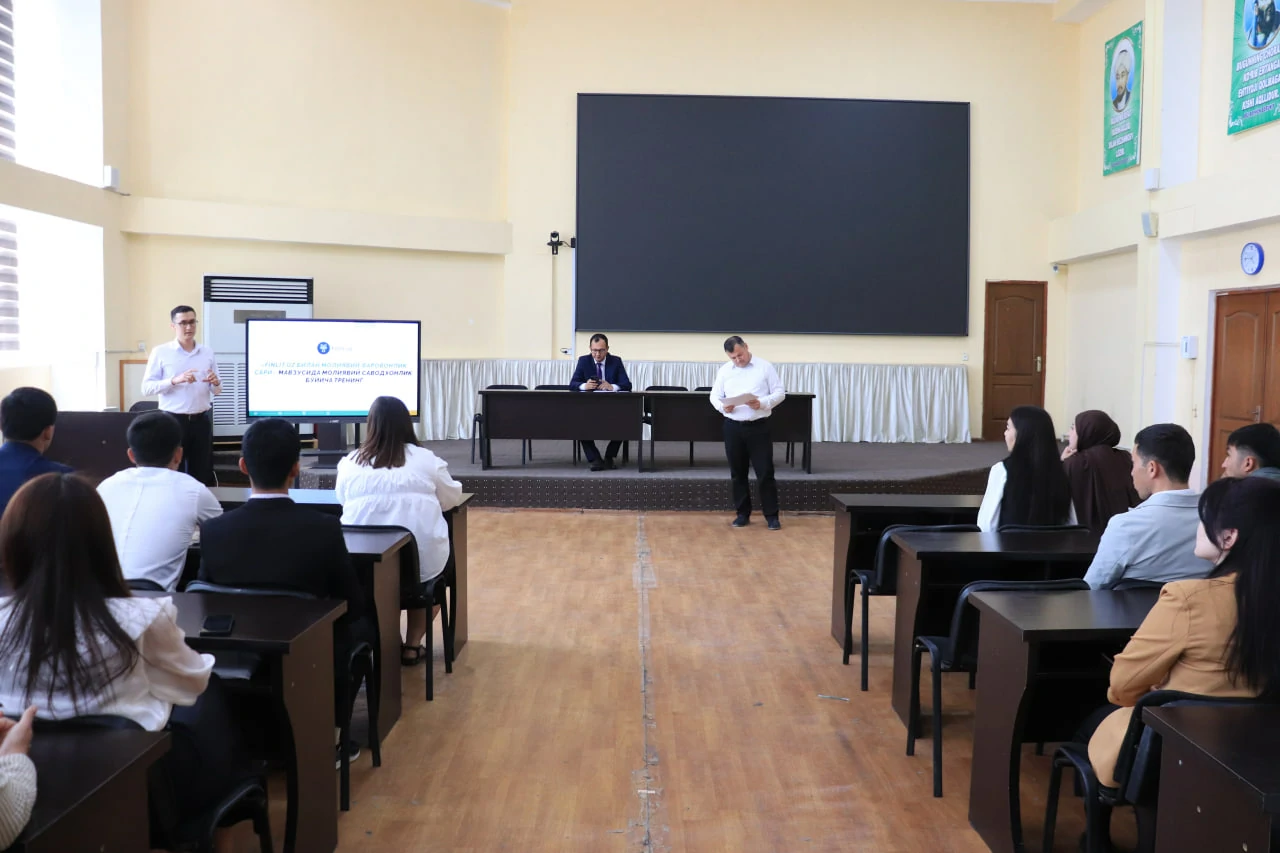 В ходе семинара-тренинга ответственный сотрудник Центрального банка по Ташкентской области И.Нишаналиев и заместитель управляющего Алмалыкского филиала Ипотечного банка О.Кудратов рассказали студентам о том, как можно получить знания о финансовой грамотности через веб-сайт «Finlit.uz».
