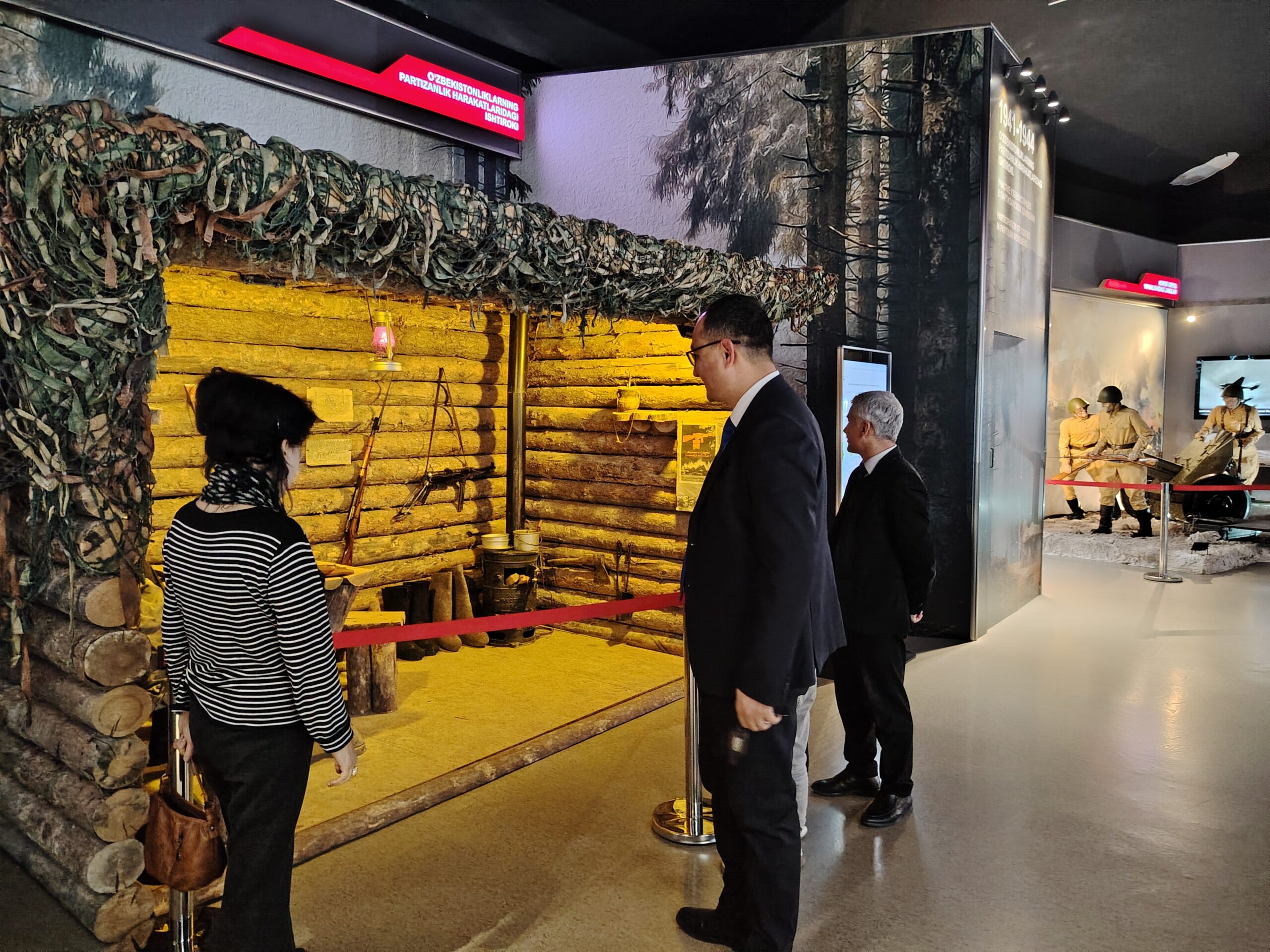 Также они увидели экспозиции, посвященные войне и ее последствиям, военные пейзажи, в том числе окопы и блиндажи, палатки, полевые кухни и другие сцены, военную технику и вооружение того времени, мужество и самоотверженность узбекского народа на фронте и в тылу, их тяжелый труд, а также их огромный вклад в достижение великой победы.