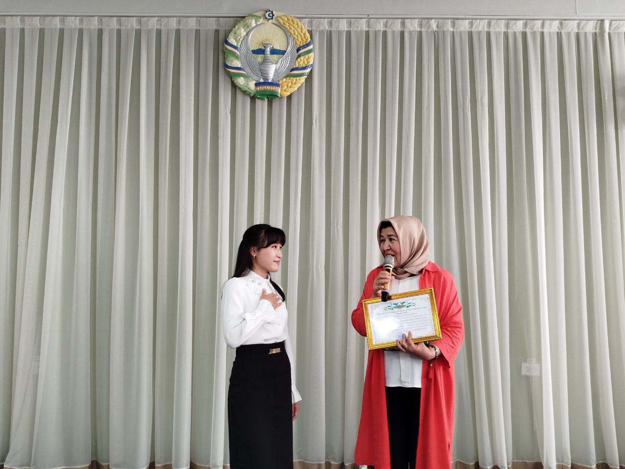 В завершение мероприятия администрации школы, учителям и родителям Ирода Аширматовой были вручены благодарственные письма от руководства филиала, а также коллекция книг.
