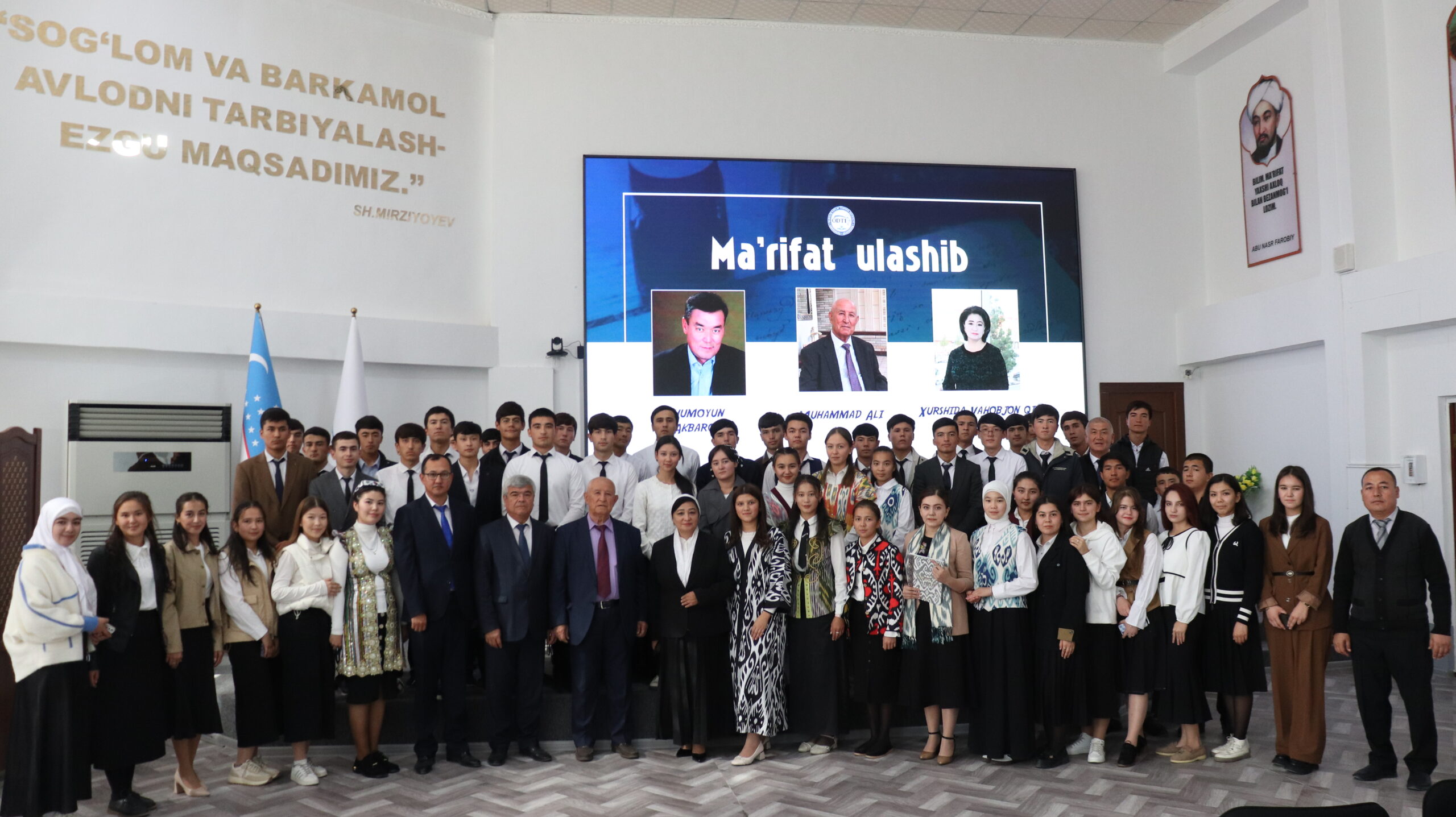 O‘zbekiston xalq yozuvchisi, atoqli shoir, tarjimon, pedgagog, Filologiya fanlari nomzodi, ,,O‘zbekiston Yoshlar ittifoqi ’’ mukofoti, ,, Berdaq nomidagi Qoraqalpog‘iston Respublikasi davlat’’ mukofoti , ,,Xalqaro Xo‘ja Ahmad Yassaviy mukofoti ’’sovrindori, ,,Mehnat shuhrati’’ ordeni, ,,El-yurt hurmati’’ ordeni , ,,Mustaqillikka 15- yil’’ ko‘krak nishoni , ,,Mustaqillikka 20 -yil ’’ko‘krak nishoni , ,, Mustaqillikka 30- yil’’ ko‘krak nishoni sohibi, ,,O‘zbekiston Respublkasi Davlat mukofoti ’’ laureati, O‘zbekiston Respublikasida xizmat ko‘rsatgan yoshlar murabbiysi, Xalqaro Turkiy Akademiyaning ,,Alisher navoiy” oltin medali egasi, Xorazm Ma’mun Akademiyasi Faxriy professori- Muhammad Ali Ahmedov, O‘zbekiston yozuvchilar uyushmasi a’zosi, tarjimon publisist, taniqli shoir , ,,Jadid ’’adabiy, ilmiy-ma’rifiy, ijtimoiy gazetasi bosh muharririning birinchi o‘rinbosari Humoyun Akbar hamda hassos shoira, O‘zbekiston Yozuvchilar uyushmasining Andijon viloyat bo‘limi boshlig‘I, ,, Bobur izdoshlari ’’ adabiy to‘garagi rahbari ,,Shuhrat’’ medali sohibasi Xurshida Vahobjon qizi institut mehmoni bo‘ldilar.