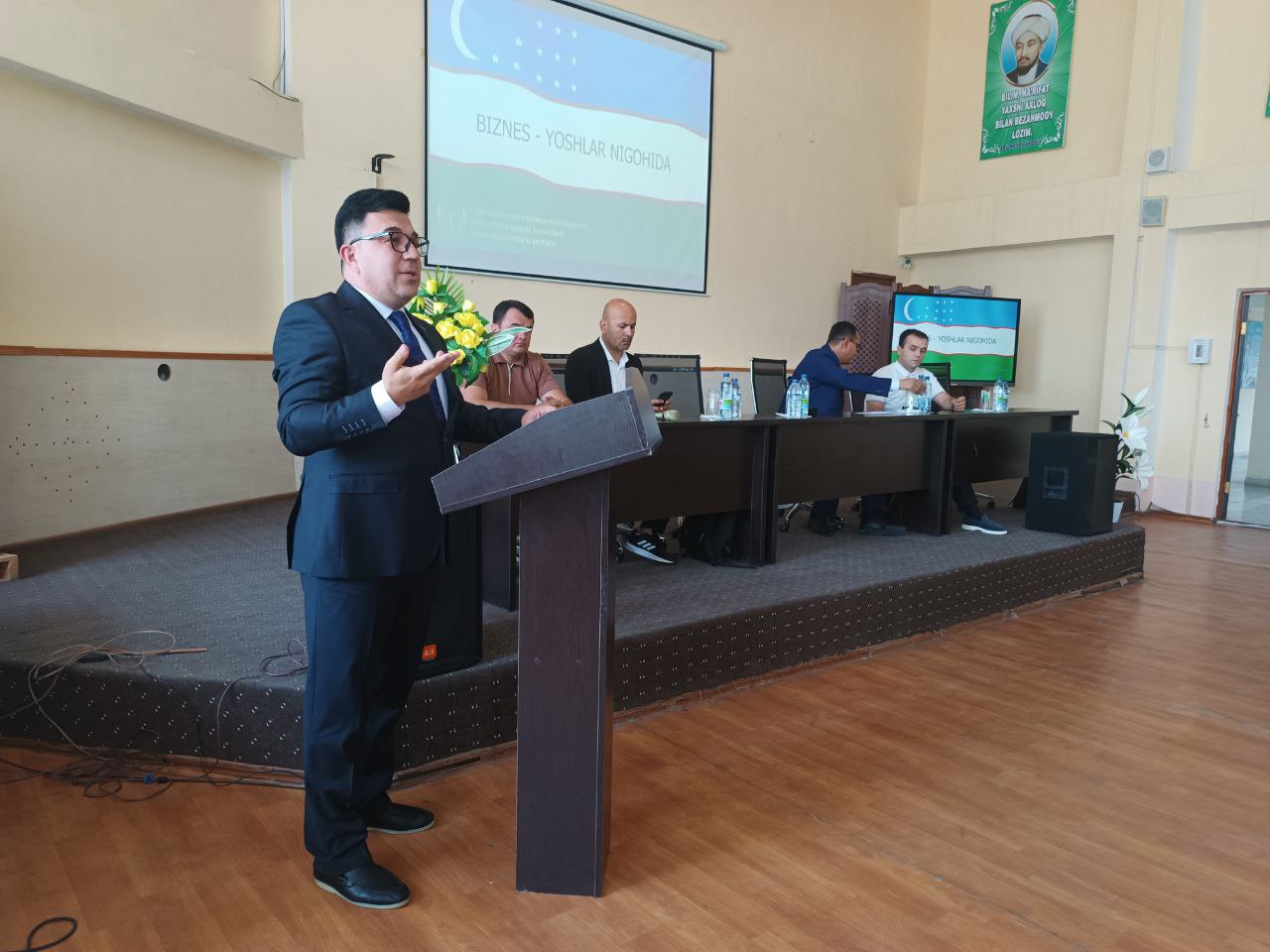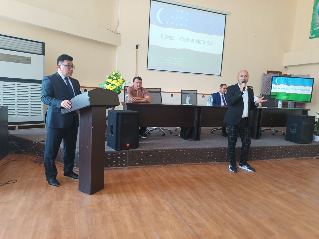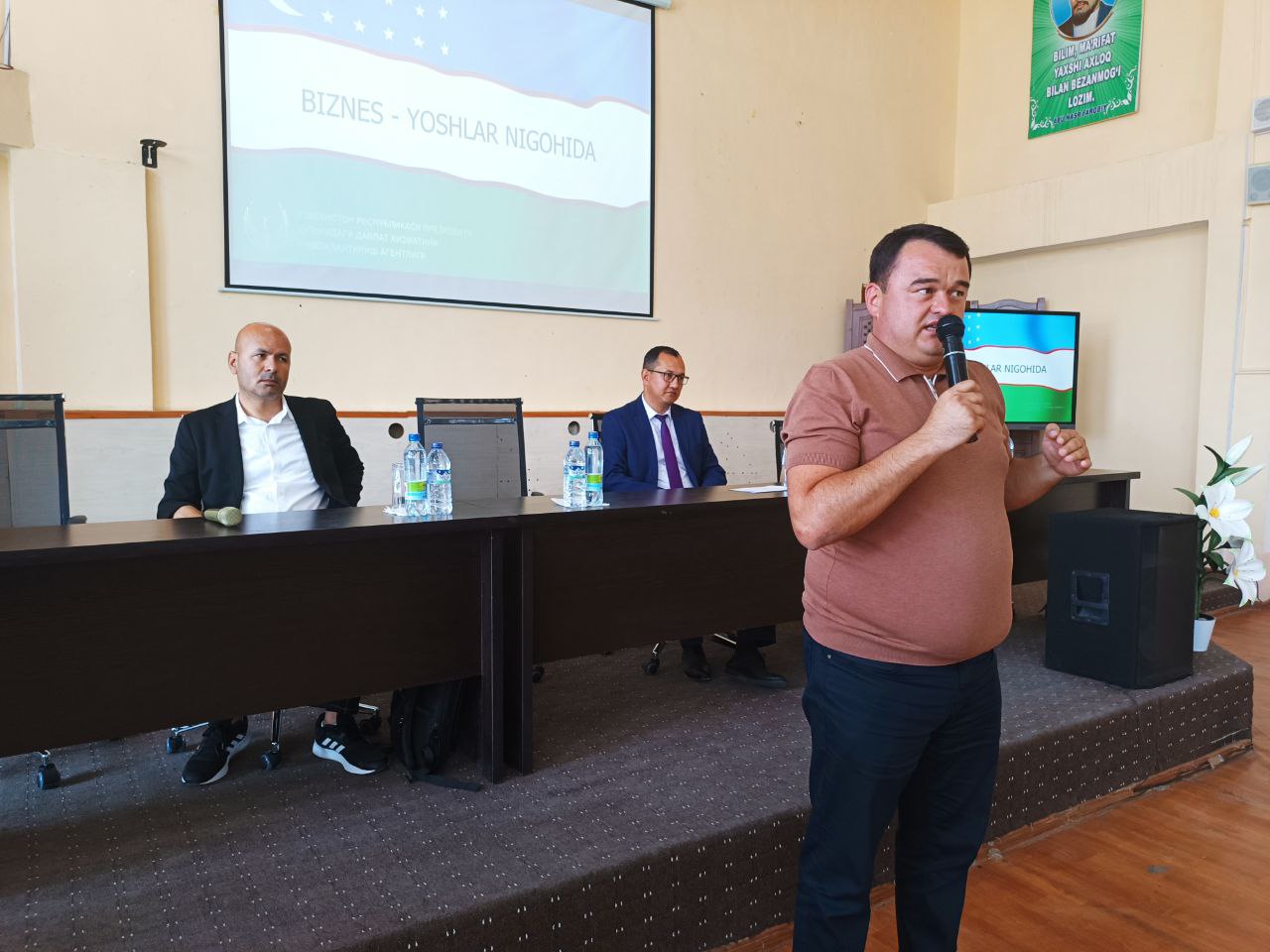 Tadbirning birinchi qismida “Yoshlar va biznesni qo‘llab quvvatlash yili” munosabati bilan shahrimizda faoliyat olib borayotgan “Vintage denim” MCHJ rahbari M.Dadaboev, “Agro produkt eksport” MCHJ boshlig‘i A.Axmadzi, “Gazeltransservis” MCHJ rahbari M.Qurbonboev biznesni boshlash uchun dastlabki qadamlar, bilim va sarmoya haqida so‘z yuritishdi. Tadbirkorlar o‘z biznesini yuritishda erishgan yutuq va yo‘qotishlari haqida so‘zlab, ishtirokchilarga qimmatli maslahatlar berishdi.