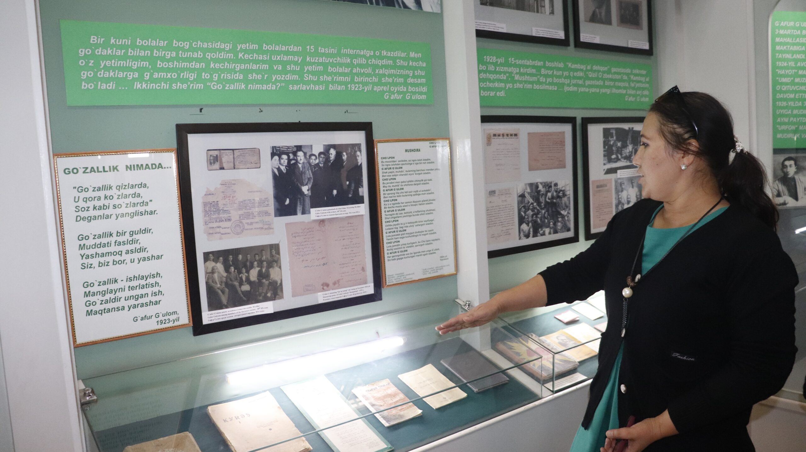 Keyingi manzil G.G’ulom uy-muzeyi bo’ldi. Bu yerda O’zbek tili va adabiyoti kafedrasi mudiri, filologiya fanlari bo’yicha falsafa doktori (PhD) Vazira Ahmedova tomonidan G’.G’ulomning hayoti va faoliyatini aks ettiruvchi muzey eksponatlari haqida talabalarga bafurja ma’lumotlar berildi.