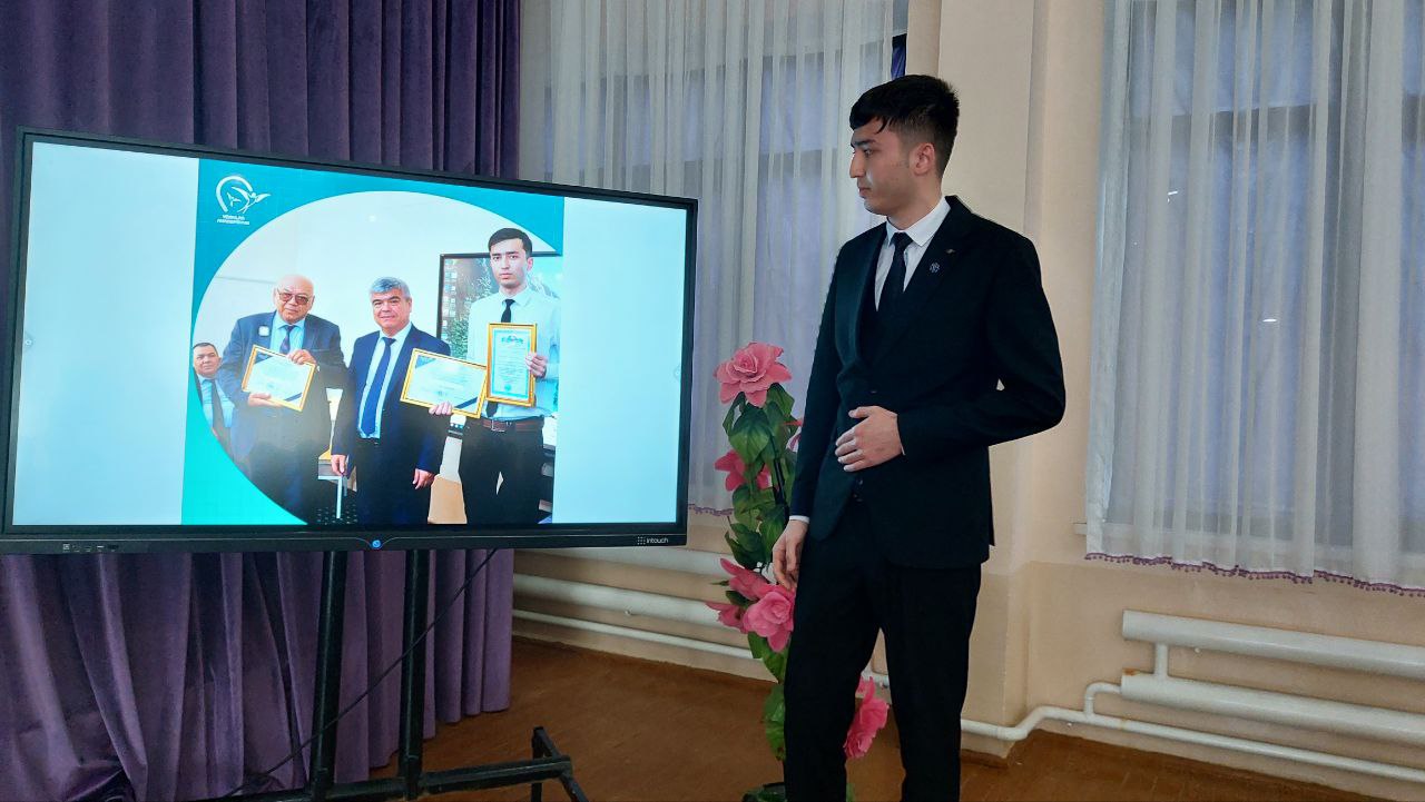 Shuningdek, ilm sohibi bo‘lishga intilayotgan kun qahramoni Behzod Abdurafiqov ham so‘zga chiqib, TDTU Olmaliq filialidagi yutuqlari, qanday qilib stipendiya sohibi bo‘lganligi, «Zakovat» intellektual o‘yinidagi ishtiroklari va boshqa tanlovlarda g‘olib bo‘lgan onlari to‘g‘risida gapirdi.