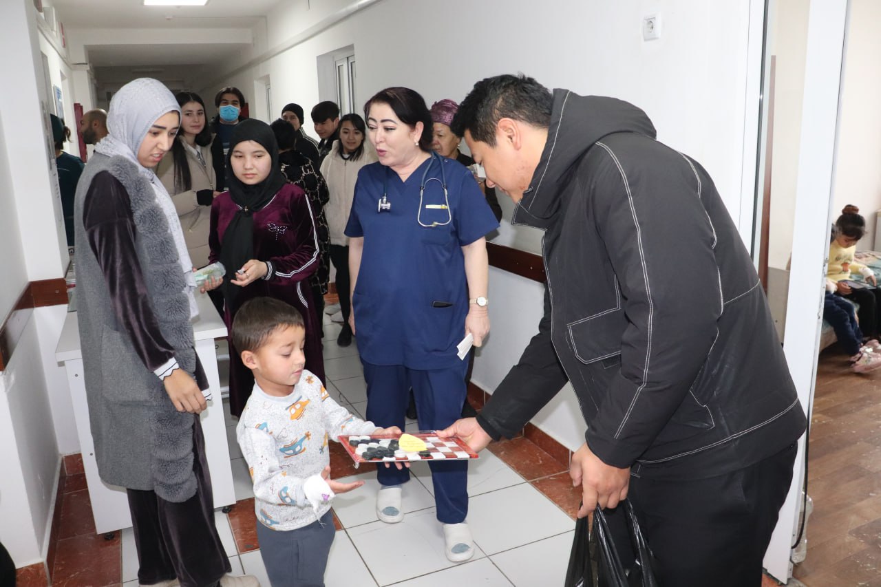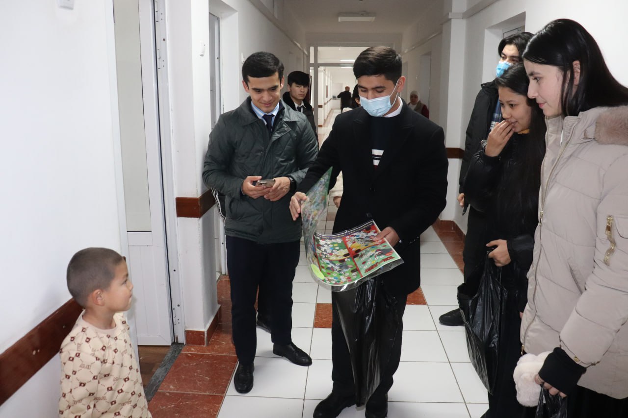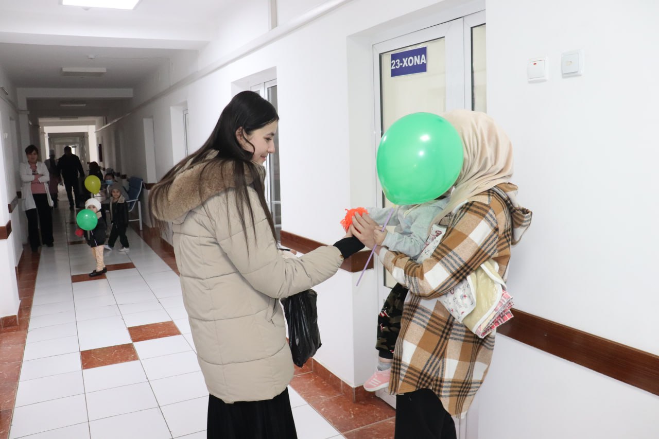 Filial Yoshlar ittifoqi boshlang‘ich tashkiloti koordinatorlari bugun shahar bolalar kasalxonasiga borib, u erda davolanayotgan bolalarga sovg‘alar bilan bir olam quvonch ulashdilar.